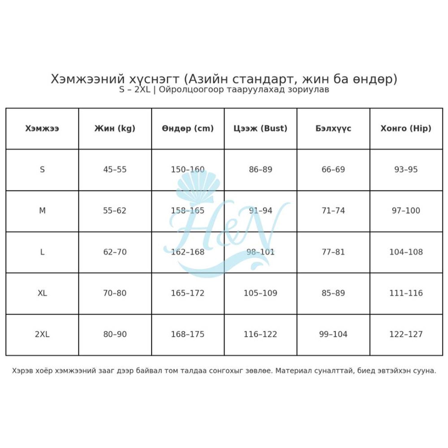 Жингийн болон өндрийн таамаглал нь ерөнхий чиглэлтэй бөгөөд биеийн хэлбэр, өмсгөлийн бариу/сул загвараас шалтгаалан бага зэрэг өөрчлөгдөж болно.